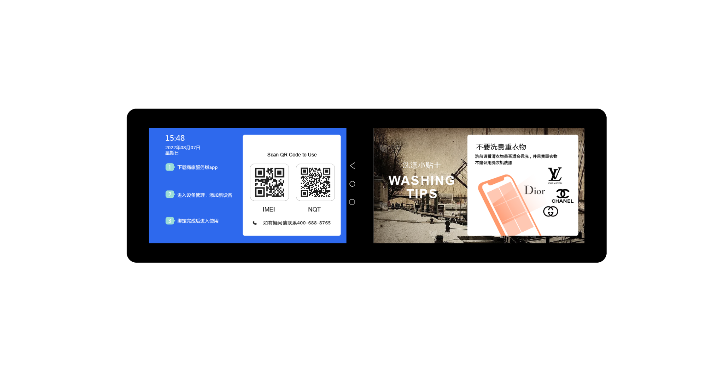 D070是一款双屏的共享洗衣机显示组件,打造高端智能自助洗衣,传递智慧生活品质。共享,正在改变人们日常的生活方式。我们提供人工智能共享解决方案,基于物联网的数据云端共享处理系统,以及配备7寸双屏触摸,通过智能面板与手机上APP的连接控制系统,让您洗衣更便利。